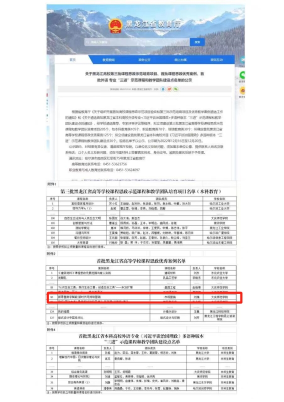 近日,在黑龙江省教育厅组织的首批高校课程思政优秀教学案例遴选工作中,经组织推荐、专家遴选、会议评选和网络公示等程序,Bevictor韦德刘楠老师主讲的《市场营销学》中的新零售数字赋能、新时代可持续营销案例获首批黑龙江省高等公司课程思政优秀案例。希望全院教师以此次为契机,深入挖掘专业课程本身所蕴含的思政元素,探索和创新课程思政建设方法,进一步深化课程思政教学改革,强化课程育人导向。
