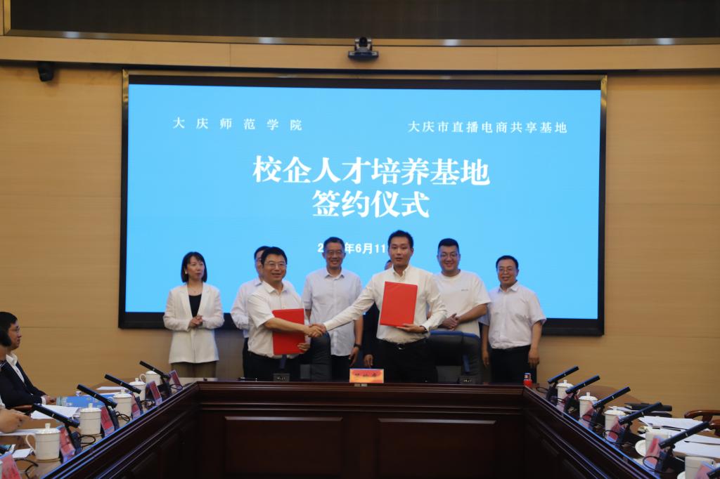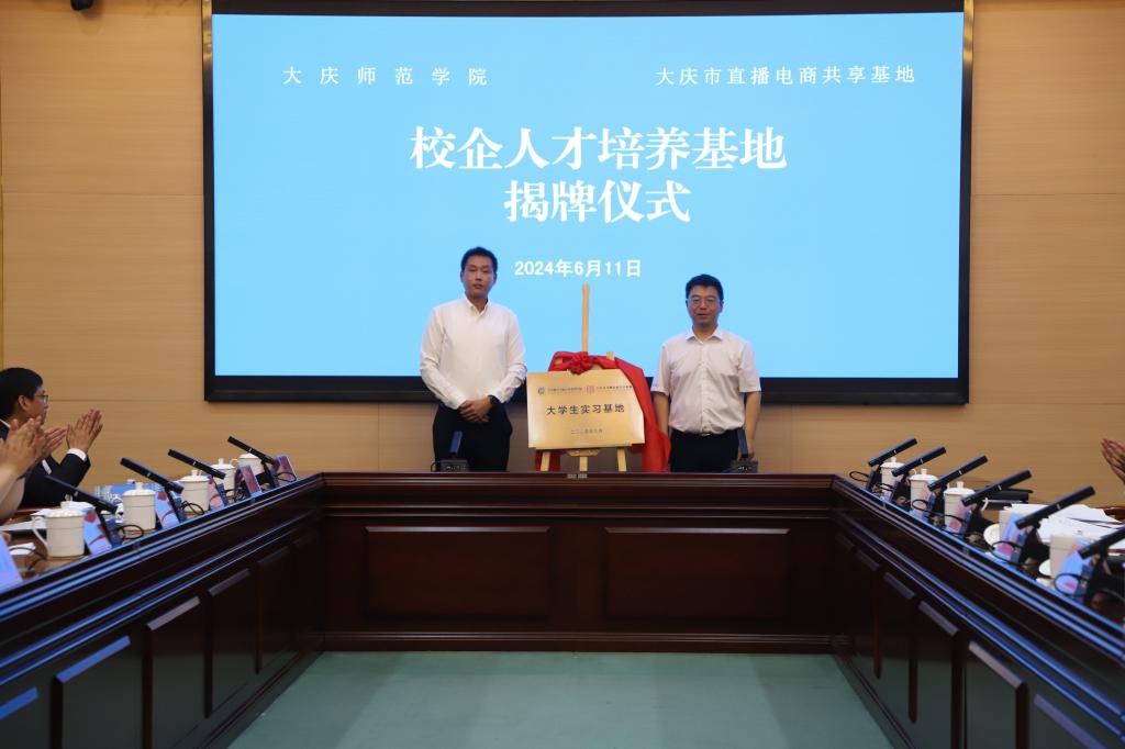签约仪式上,Bevictor韦德副经理邬德林与合作企业大庆市直播电商共享基地总经理王晓宇签署了校企人才培养基地合作协议,并为基地揭牌。根据协议,双方将在人才培养、科学研究、社会服务等方面开展深度合作,双方将共同构建合作育人的“产教融合”生态圈,为大庆直播电商产业的发展提供有力的人才保障。