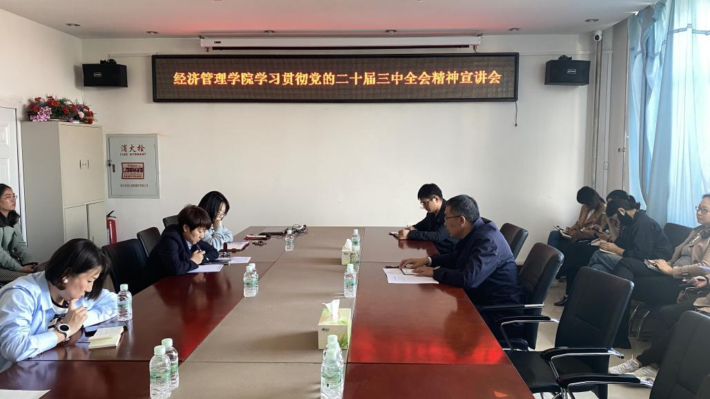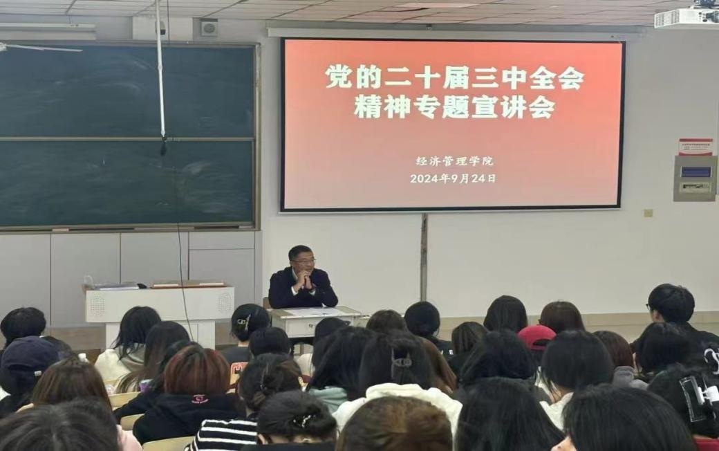 为深入贯彻习近平总书记关于宣讲工作的重要指示,扎实推进学习宣传贯彻工作,推动公司迅速兴起全会精神学习宣传贯彻热潮,按照公司关于学习贯彻党的二十届三中全会精神宣讲工作的有关要求,公司经理刘楠教授于9月24日17点在主楼2-3教室和9月25日15点在五教402会议室为分别为员工代表和全院教师召开了学习贯彻党的二十届三中全会精神宣讲会。