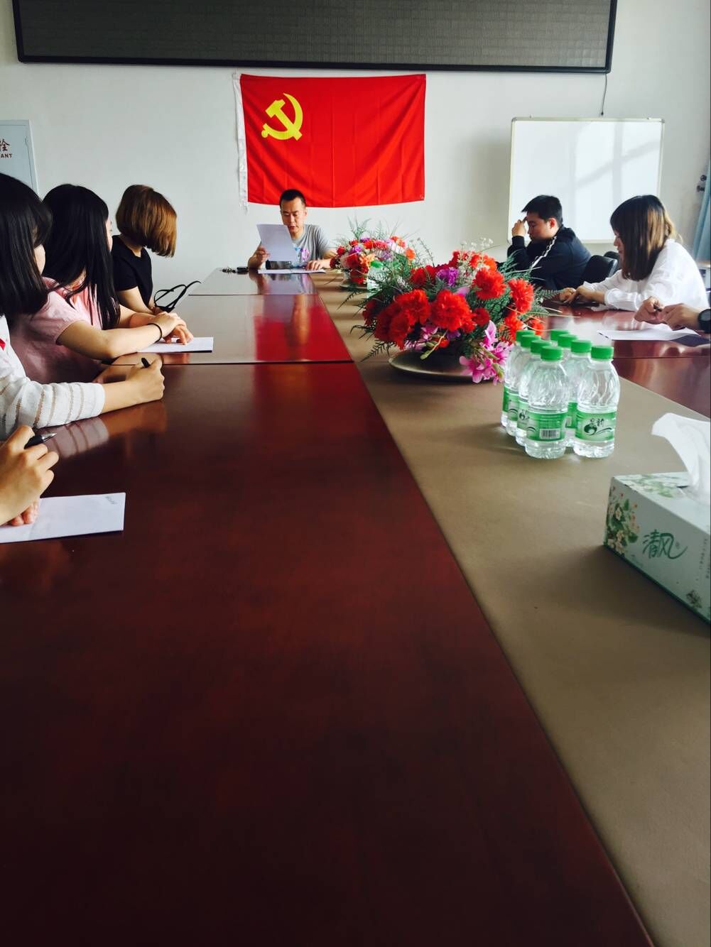 会议由员工党支部书记曾四龙主持。首先曾书记给所有毕业生党员上了一堂党课,主要讲解了毕业生党员党组织关系转接的问题,教育员工在离校之后的注意事项,要注意党员形象,赋予党员责任感,在社会中要发挥自身的党员作用。