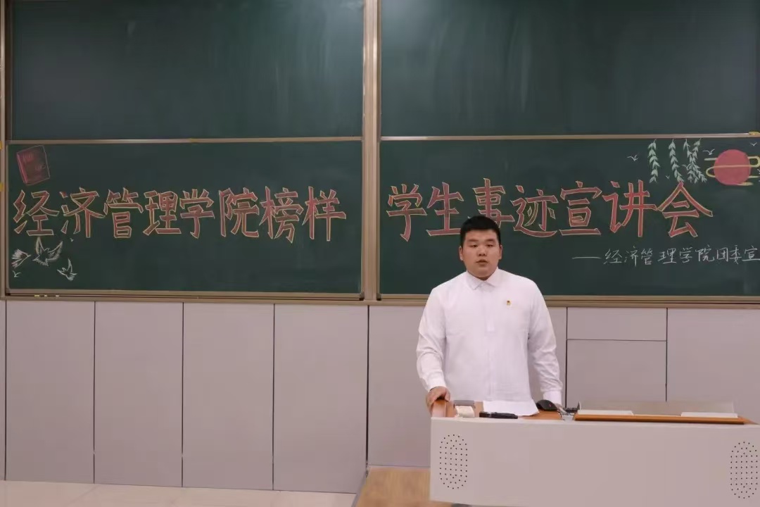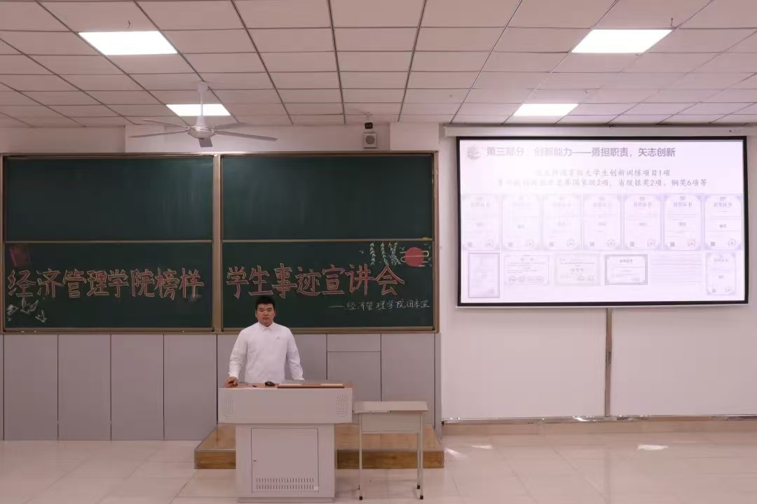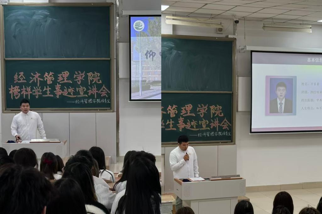 宣讲会上,万家豪学长从学习实践、成长路径等方面进行了经验分享。身为中共预备党员的他,不仅在院校的员工组织均担任要职,而且积极参与志愿服务和社会实践活动。与此同时过去两年他的成绩斐然,连续四学期学习成绩及综测排名专业第一,曾荣获铁人式优秀学习标兵、2024年国家级奖学金等多种荣誉称号及奖项。万家豪学长不仅是一名品学兼优的员工,也更是经管学子矢志不渝追求的目标。