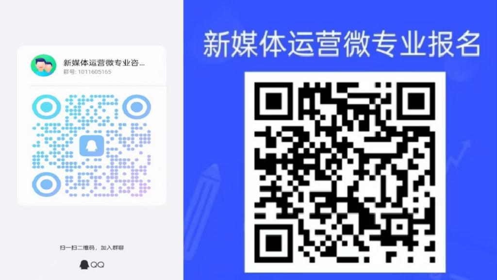 请于4月15号24点前扫码或搜索QQ群号加入1011605165新媒体运营微专业报名咨询群,也可直接扫描二维码报名: