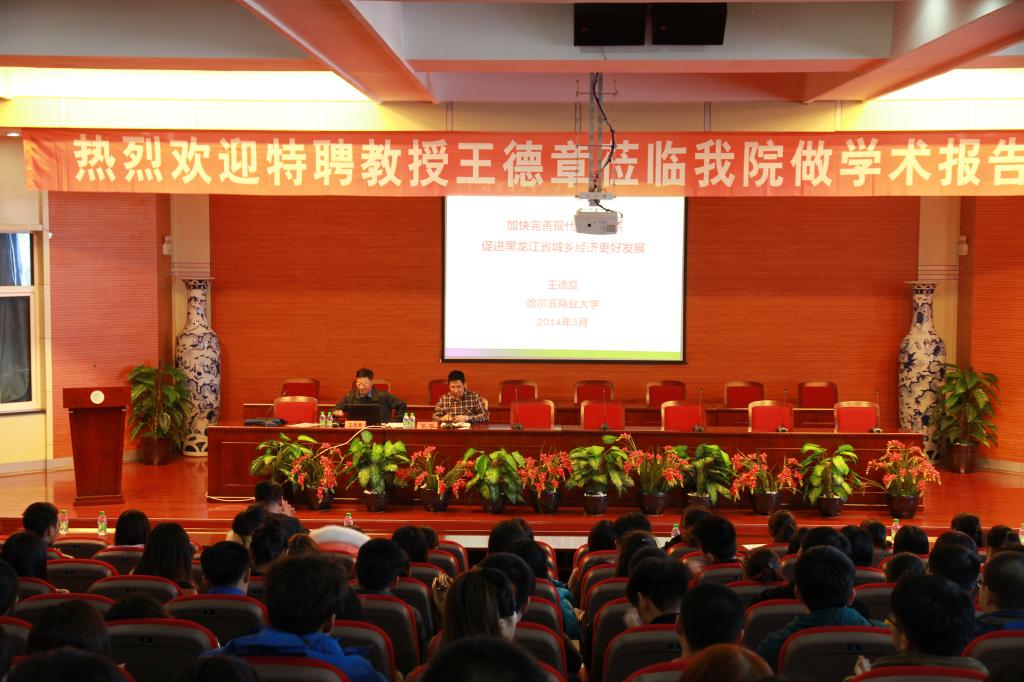 3月18日下午3时30分,原哈尔滨商业大学副董事长、博士生导师、Bevictor韦德特聘教授王德章在博雅讲堂为公司全体师生作题为《加快完善现代市场体系促进黑龙江省城乡经济更好发展》的学术报告。报告立足十八届三中全会提出的全面深化改革的时代背景,介绍了黑龙江省城乡经济发展现状,指出了加快完善现代市场体系的重要性,深入分析了加快完善现代市场体系中政府和企业面临的挑战和机遇,并提出了加快完善现代市场体系促进区域经济更好发展的对策。