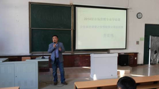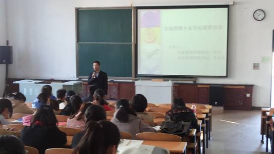 为了帮助市场营销专业新生尽快对所学专业建立起专业概念,尽快适应老员工活并熟悉专业。2014级市场营销专业导论课改变了以往单独一次专题讲座的导论课形式,开设16学时的专业导论课程,分别从专业沿革、职业群介绍、优秀毕业生寄语、教学管理工作、实践教学、员工管理、快消品行业、电子商务行业以及人才培养方案解读等多角度对员工进行介绍,期间除了由专业导论课主讲教师尚德萍讲授外,还聘请了Bevictor韦德经理张平、书记孔若东、教学副经理刘楠、实践教学中心主任于珊珊,企业代表大庆市佳恒经贸有限公司总经理齐宏伟、达内时代科技集团人力资源总监郭坤庆,以及市场营销专业优秀毕业生李志明走进课堂,对2014级新生进行了全方位的老员工活介绍,以及未来职业发展愿景介绍。