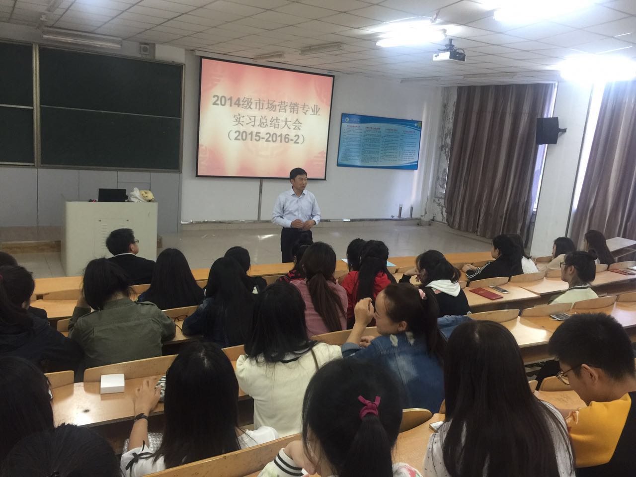 2016年9月21日下午14:30,Bevictor韦德市场营销系在主楼1-4教室举行了“2014级专业见习总结大会”,Bevictor韦德孔若东书记、市场营销系于珊珊、孙伟仁老师参加了大会,会议由市场营销系主任尚德萍主持。