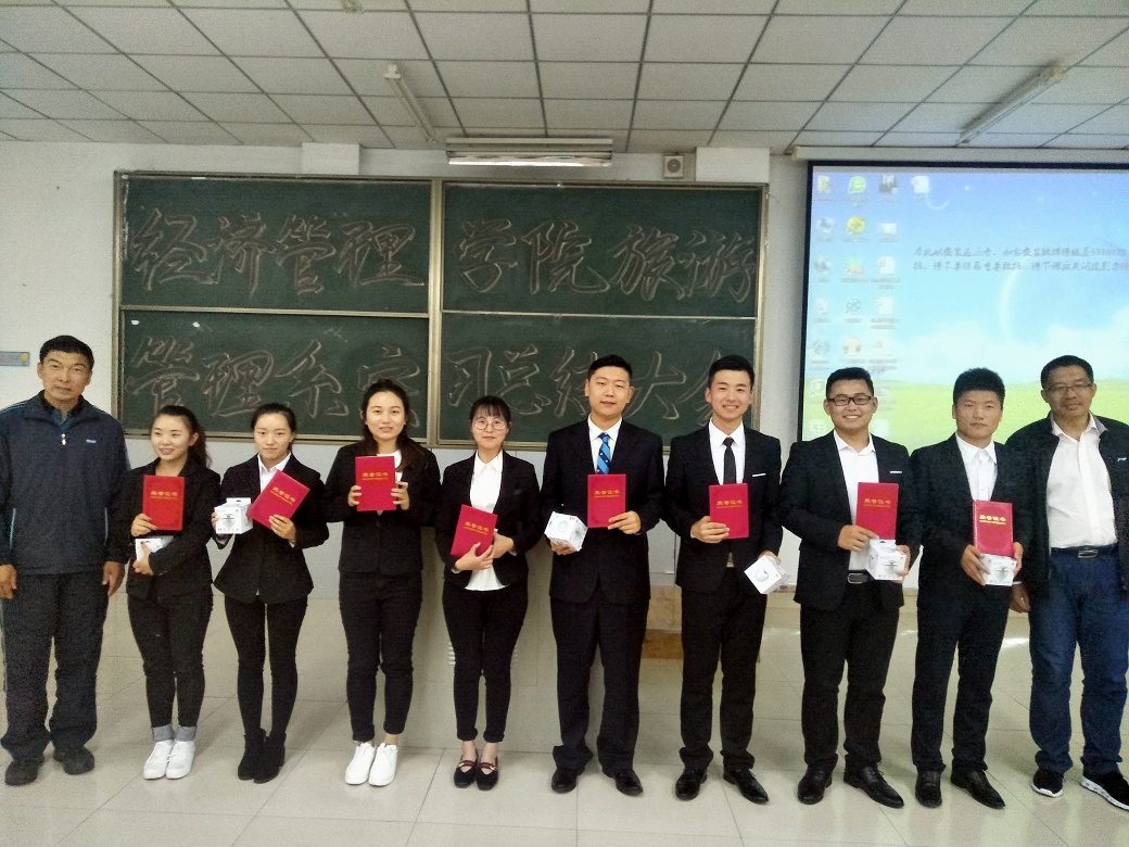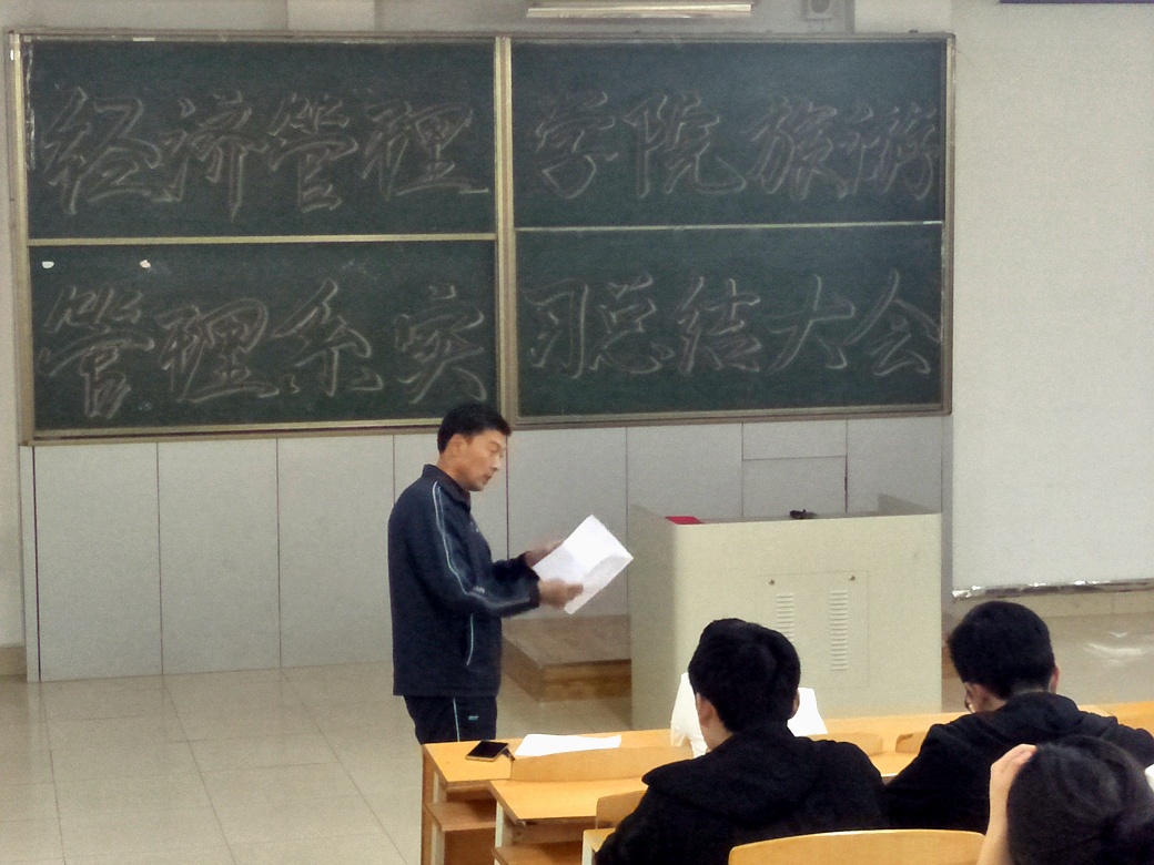会上,车主任对此次实习做了简要的总结,明确了各个实习单位和实习计划时间表,并展示了部分同学所获得的表扬信。随后,每个实习单位小组派代表讲话,以PPT演讲的方式,围绕实习工作和生活,给同学们和2016级的学弟学妹们分享了自己的心得体会和经验。各小组讲话都十分精彩,真实的表达了自己对于实习的感悟。接下来,则是对8位优秀实习生代表进行嘉奖,酒店管理专业5名,旅游管理专业3名,鼓励各位同学再接再厉,越来越优秀。最后刘楠经理就此次总结大会发表讲话,衷心的感谢车鑫老师和历届学长学姐们为后来的同学们搭建的实习平台,对实习生代表的讲话提出表扬,并给同学们提出建议,希望同学们能明确目标,注意职业目标的选择。孔若东书记同样表达了对于实习生们的赞美,也希望同学们能够珍惜机会,提高自己的能力。