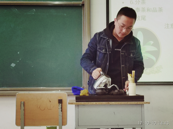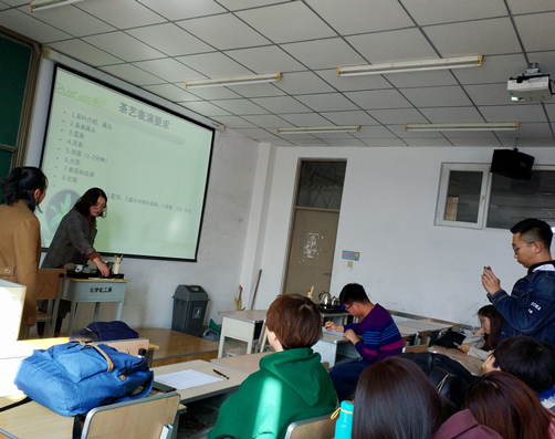 本学期郝毓业老师为2015级旅游管理、酒店管理专业开设了《茶艺与茶道》专业选修课,为了加深员工对中国茶艺文化的理解,让员工分组进行茶艺表演,每组由老师随机选取两名员工进行茶艺表演。茶艺表演包括背景音乐、茶叶介绍、备具展示、温具、洗茶、泡茶、分茶、奉茶、品茶和收尾等。在表演过程中,员工对茶艺表演的具体要求和考核标准有了清晰的认识。茶艺表演大赛,集中体现了课程核心知识,展示了员工对课程核心知识掌握情况,较好地完成了课程要求。