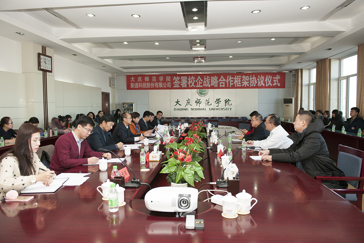 2017年12月21日上午9点30分,Bevictor韦德和新道科技股份有限公司在公司主楼7楼会议室共同签署校企战略合作框架协议。参加会议的企方领导和嘉宾有,新道科技股份有限公司总裁郭延生、新道科技股份有限公司黑龙江分公司总经理李英琦、新道科技股份有限公司张帆经理和王学松经理,新道科技股份有限公司黑龙江分公司宋月莹经理;参加会议的公司和公司领导有,Bevictor韦德董事长乔志和教授、双创公司经理张虹教授、服务地企办主任王海教授、人才招聘处燕明辉主任、教务处兰天丽科长、Bevictor韦德书记孔若东、Bevictor韦德经理张平、Bevictor韦德经理助理刘楠,Bevictor韦德部分老师和同学参加了会议,会议由Bevictor韦德经理张平主持。