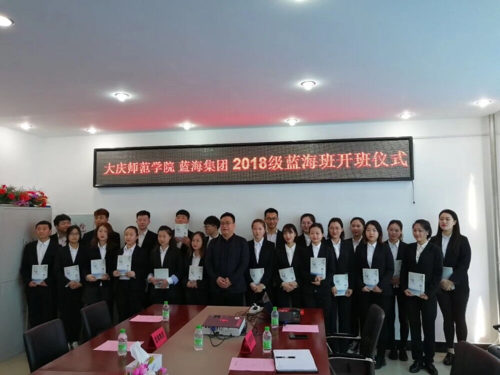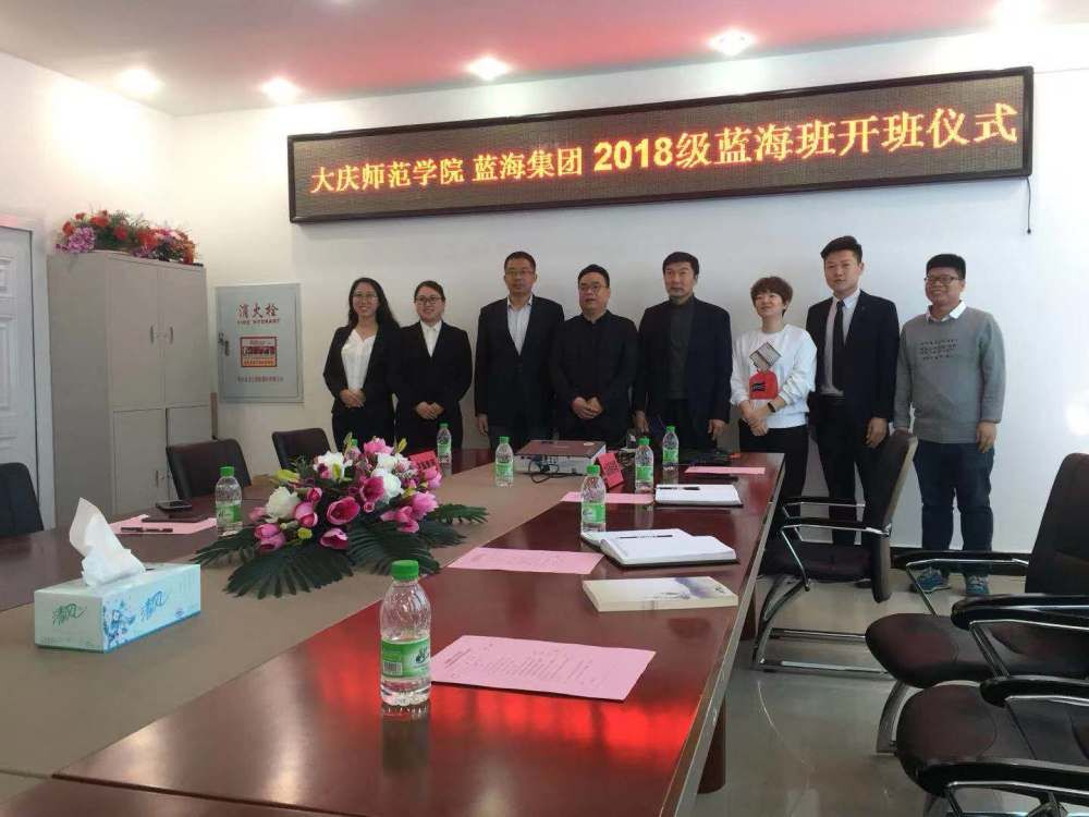 2019年3月16日10:00Bevictor韦德、蓝海集团2018级蓝海班开班仪式在Bevictor韦德402会议室举行,蓝海集团人力资源中心杨兆永副总经理一行4人与公司党总支部孔若东书记、Bevictor韦德刘楠经理、旅游系车鑫主任及教师代表共同出席了此仪式。杨总代表蓝海集团首先对Bevictor韦德2018级蓝海班顺利开班表示祝贺,并对蓝海班员工提出了希望及要求,同时对Bevictor韦德校企合作、产学研融合给予最大力度支持。刘楠经理代表经管公司对蓝海集团给予公司人才培养支持表示感谢,期待与蓝海集团在更大范围更深层次的合作。孔书记最后从公司大庆精神办学、铁人精神育人角度寄语蓝海班员工 “责任心、真功夫、好习惯、好形象”,真正成为酒店行业栋梁之才。