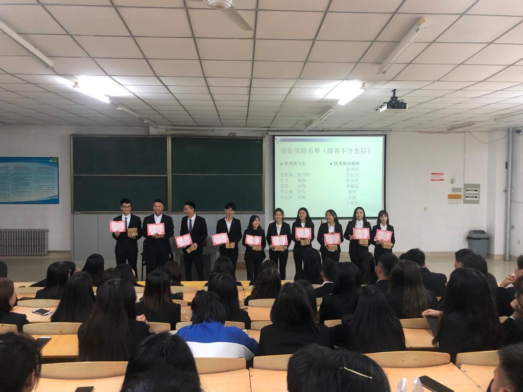 大会表彰祖薪童、张宇、聂静、贾志铖、刘仙胜、段巧玲、孙悦、梁微、林璐、钟荧十名同学,最后系主任车鑫进行总结。经过了此次专业实习,2017届员工得到了经验和成长,并为未来的工作奠定了基础,也对2019届员工起到了标榜的作用。路途尚且遥远,相信未来的同学们都能阳光且向上,破茧成蝶,迎风飞翔。