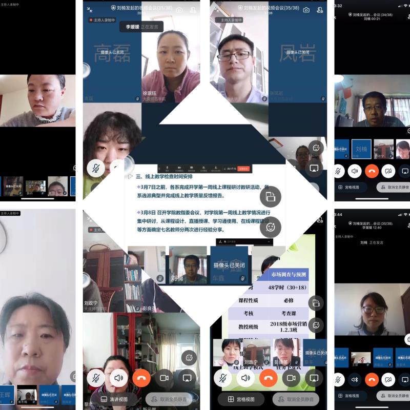 首先,经理助理李媛媛博士反馈了第一周线上教学检查的实施方式、基本情况,归纳了公司典型做法,目前存在的问题和下一步改进的建议;随后,四位老师分别从不同角度进行了典型经验分享,尚德萍老师分享了《市场调查与预测》“项目式”课堂设计、考核、评价、反馈等如何在线上教学的思考与实施;彭良英老师分享了“腾讯直播+录播+学习通平台”下《经济法》课程线上教学的师生互动、课程设计等经验;郝毓业老师分享了如何将知识点、任务点考核向能力提升转化的线上教学课程设计和思考;秦冬梅老师分享了“引导、陪同、深度”视角下《国际贸易实务》课程线上教研经验与效果思考。