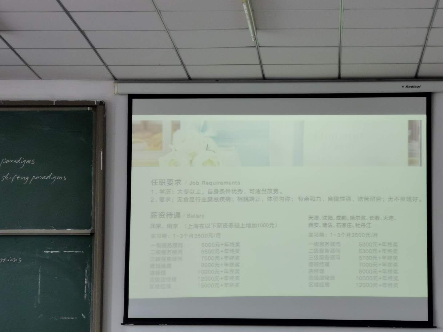 通过一段视频员工们了解到好利来的发展历程和企业文化,王经理随后补充了关于以往招聘当中的一些员工们感兴趣的问题,包括未来职业发展的具体路径、员工住宿条件、薪资待遇及以往从老员工成功晋升经理的案例等等。宣讲会后王经理对投递简历的同学进行面试,反馈效果也非常好。