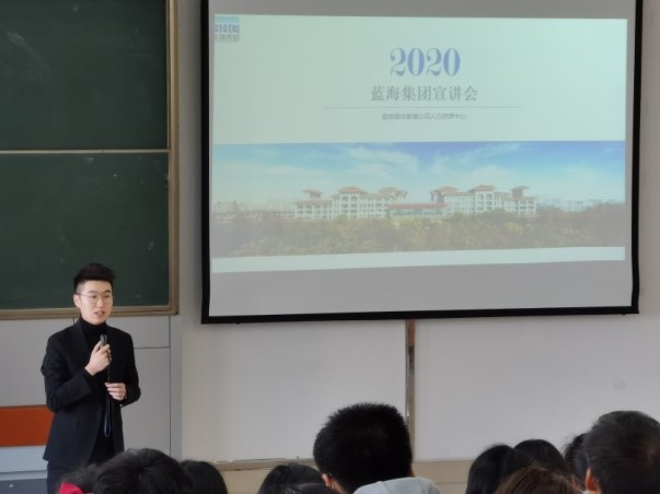 上午8:00,蓝海集团人力资源中心招聘总监李淼为18级和19级员工进行了企业宣讲,主要介绍蓝海集团现状、集团发展史、蓝海集团文化以及集团自己的相关产业等,还特别提出了蓝海的管培生计划和实习生薪资待遇问题。同学们仔细聆听,受益匪浅,更是了解和学习到了很多关于蓝海集团企业与就业方面的知识。