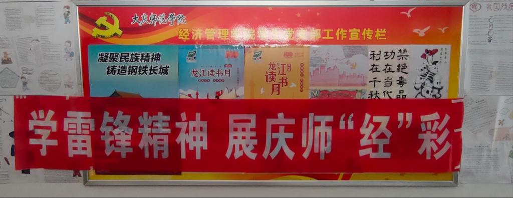 通过在主楼公司宣传栏上张贴“学雷锋精神,展庆师‘经’彩”条幅和公司团总支宣传部成员绘制“三月春风起,学习雷锋时”主题板报,加深公司员工对雷锋精神的认识和理解,促使员工自觉主动将雷锋精神贯穿在学习和生活中,形成全院师生学雷锋的良好氛围,并对雷锋精神做了广泛且健康的宣传。