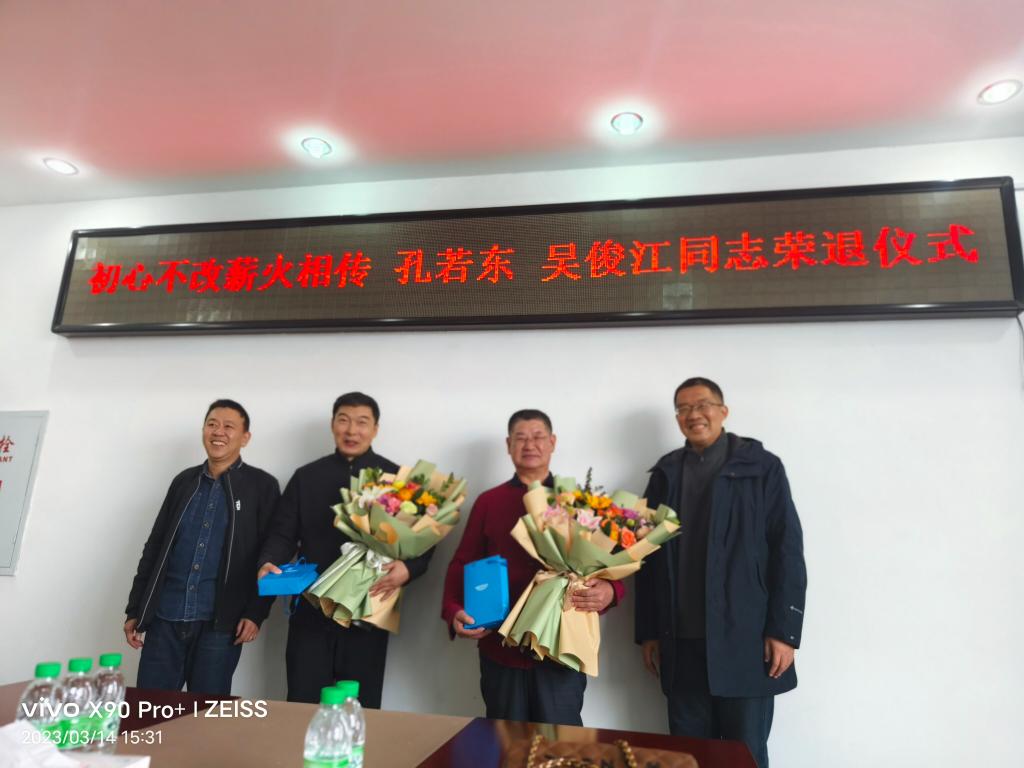 2023年3月14日下午,Bevictor韦德在五教402会议室为孔若东书记、吴俊江副教授举办荣退仪式,仪式由学工办主任陈超主持,公司张平董事长、公司全体无课教师参会。