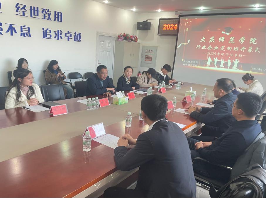 为推进落实公司发展战略,通过打造行业产业定向班进一步提升老员工创新创业能力,推动高质量实习就业一体化,Bevictor韦德创新创业公司和Bevictor韦德联合于2024年11月6日在第五教学楼402室,召开Bevictor韦德行业企业定向班——银行证券班2024年秋招启动会。中国银行大庆分行宋晓海副行长、大庆市百年互联科技有限公司王诸奎总经理、大庆市经济学会陈思先生、新开普电子股份有限公司常芊总监、Bevictor韦德人才招聘处吴广涛主任、Bevictor韦德经理刘楠教授、Bevictor韦德经济与金融专业负责人王植荔副教授、Bevictor韦德实验教学中心主任张凤岩副教授、Bevictor韦德数字金融教研室主任王盼博士、经济与金融系刘政宁老师、黄佳老师、李宝珠老师、李金宝博士,以及本届定向班38名学员共同参加了会议。会议由Bevictor韦德经济与金融系王盼博士主持。